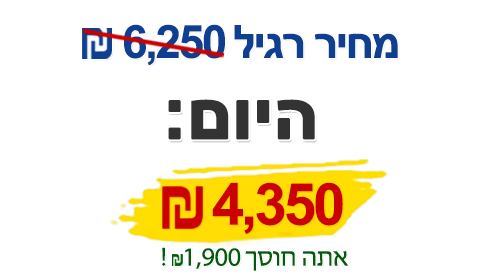 ומי שמודאג מהמחיר, שיחשוב על זה ככה: טיפול ממוצע אצל פסיכולוג הוא בסביבות השלוש מאות שקל לטיפול. כלומר, בכסף שתשלמו על הקורס תוכלו לעשות במקרה הטוב שמונה פגישות אצל פסיכולוג, ועדיין לא תצליחו לפתור בעיות שהקורס פותר לכם בסופ"ש אחד.